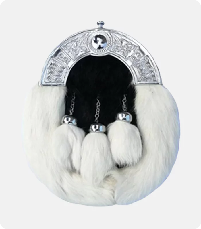 Custom Made Celtic Thistle White Rabbit Fur Sporran